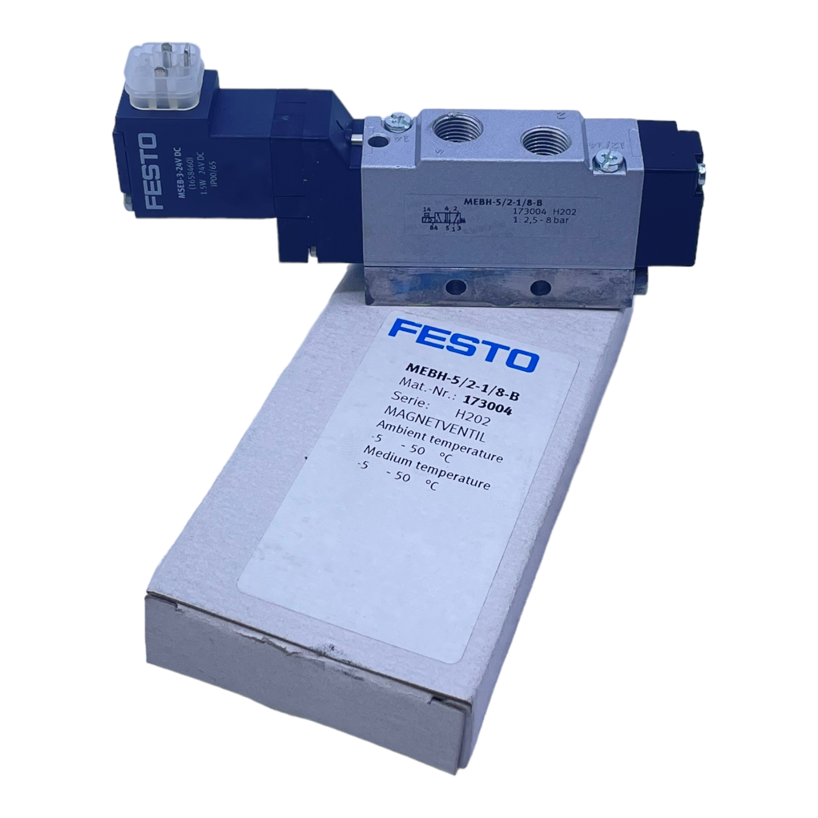 Festo MEBH-5/2-1/8-B Magnetventil 173004 2,5 bis 8bar 24V DC: 1,5 W
