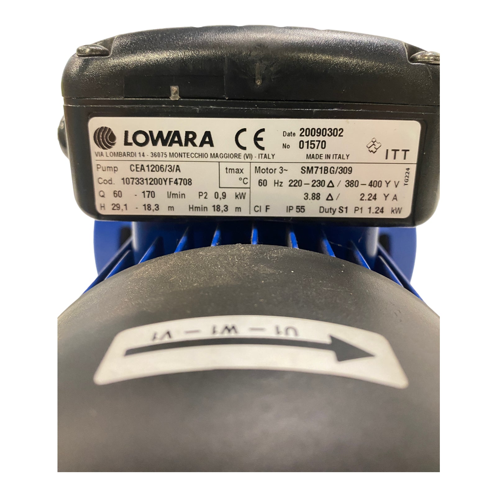 Lowara CEA1206/3/A Kreiselpumpe 60Hz 220-230 / 380-400V 3.88 / 2.24A 1.24 kW