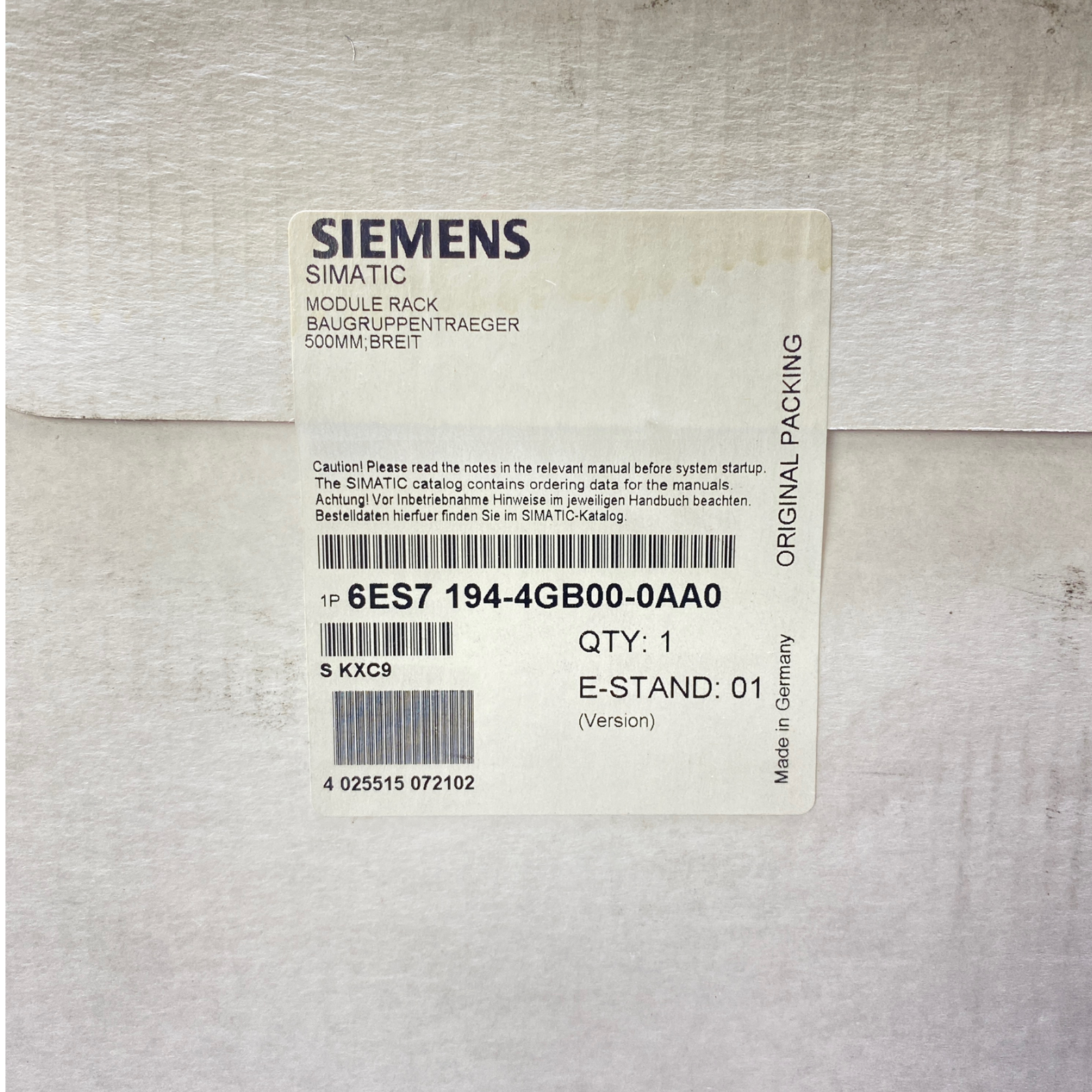 Typ/Herstellernummer: 6ES7194-4GB00-0AA0