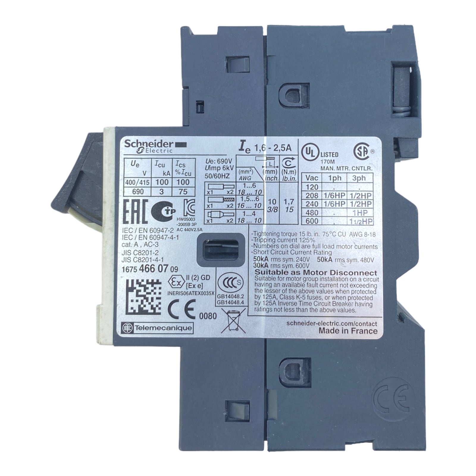 Schneider GV2ME07 Motorschutzschalter 400/415V 1,6-2,5A