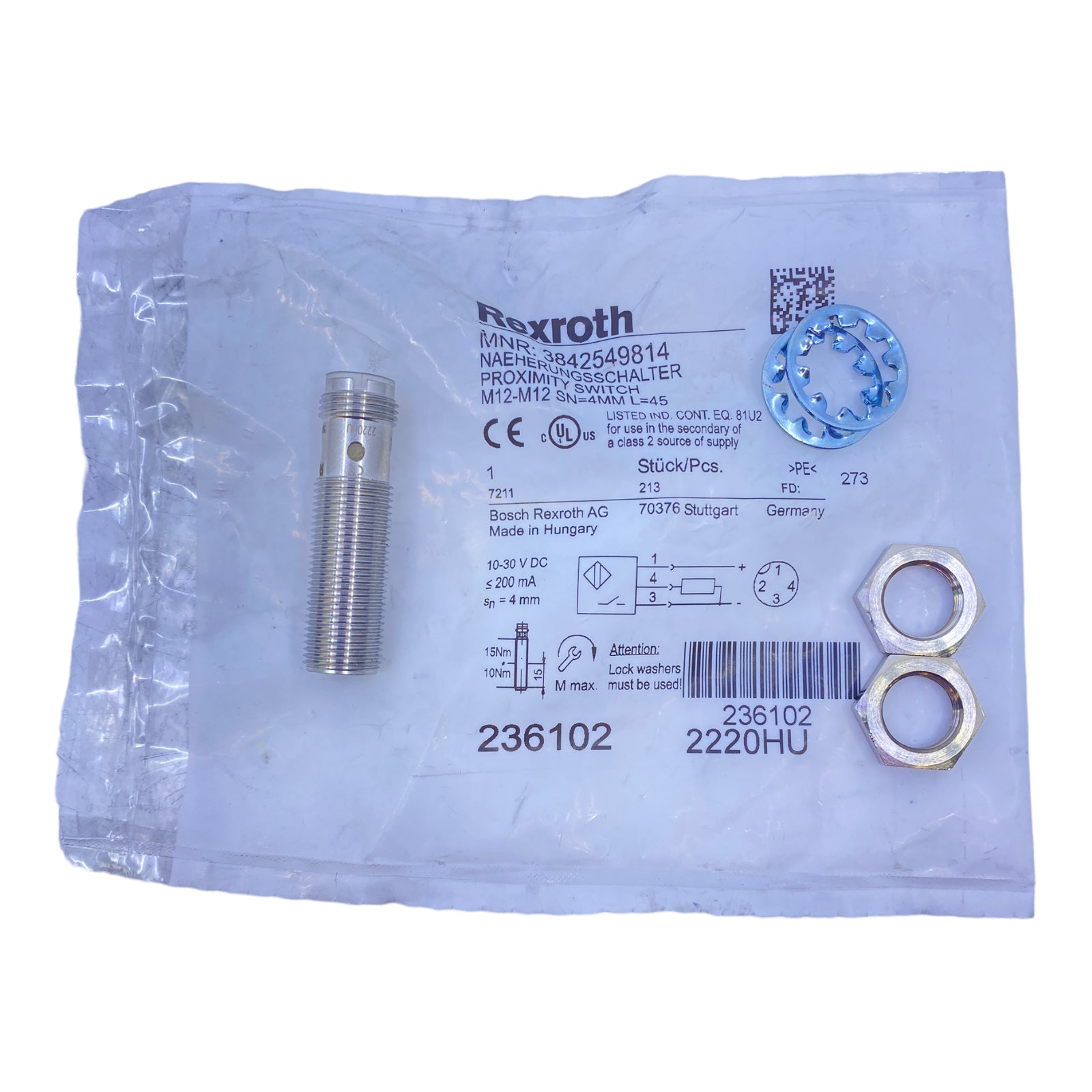 Rexroth 3842549814 Näherungsschalter M12-M12 SN=4mm L=45 10-30V DC 200 mA