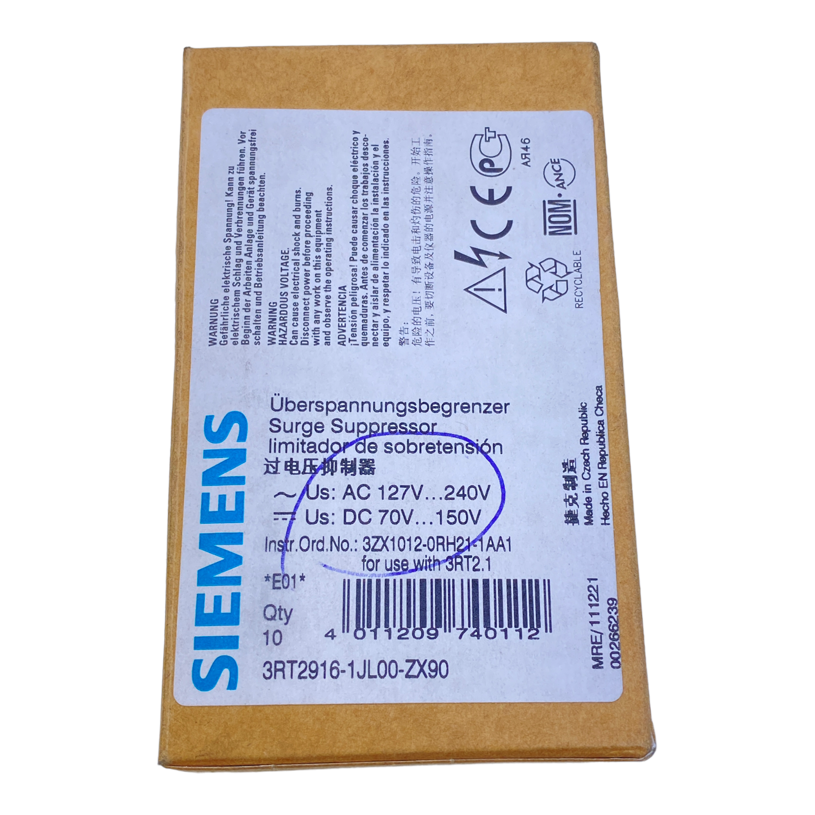 Siemens 3RT2916-1JL00 Überspannungsbegrenzer 127…240V AC / 70…150V DC VE: 8stk