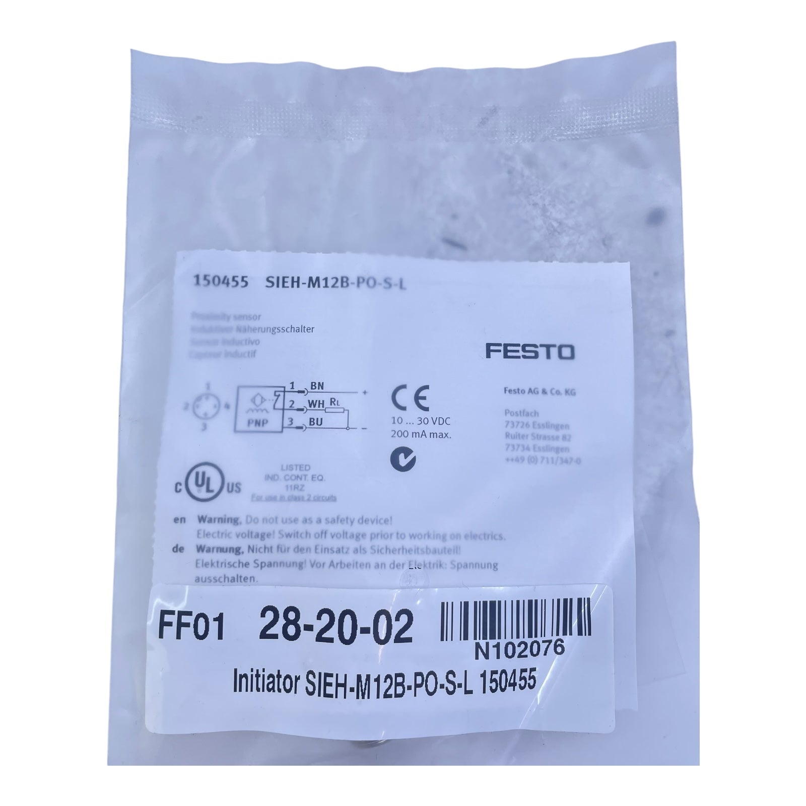 Festo Näherungsschalter Induktiver Sensor SIEH-M12B-PO-S-L 150455 Festo