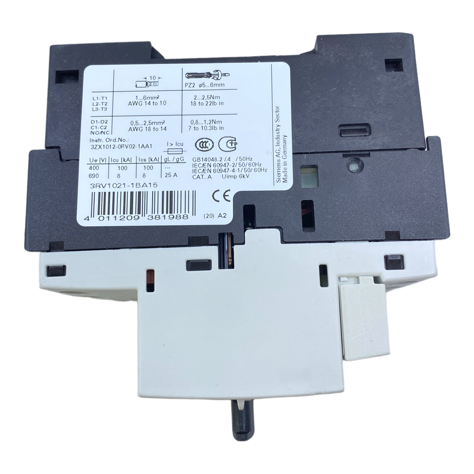 Siemens 3RV1021-1BA15 Leistungsschalter 1,4-2A / 1NO+1NC - Industrie Einsatz