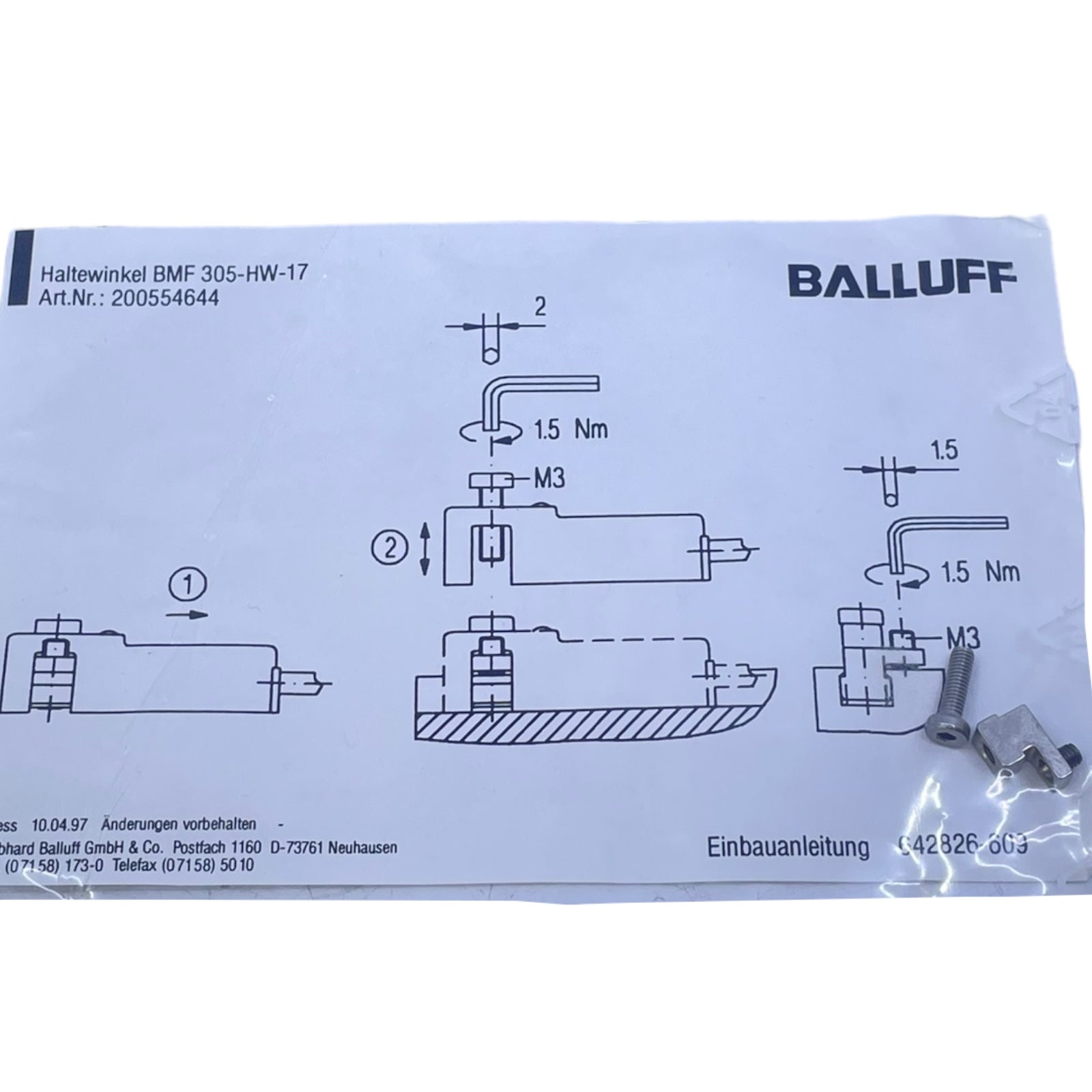 Balluff BMF305-HW-17 Haltewinkel für Sensoren 200554644 VE: 5stk/pcs Haltewinkel