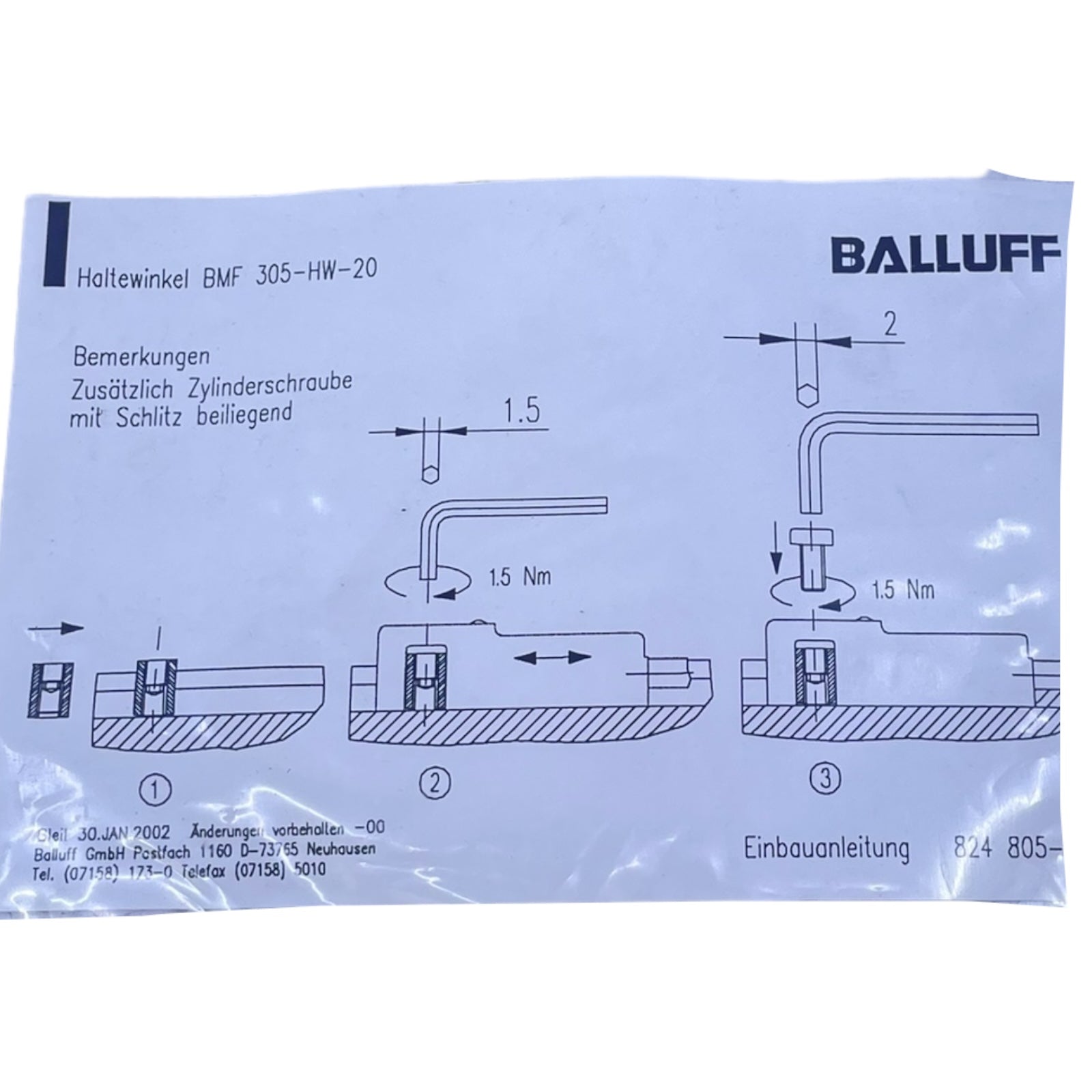 Balluff BMF305-HW-20 Haltewinkel für Sensoren 125615 VE: 5 stk/pcs Haltewinkel
