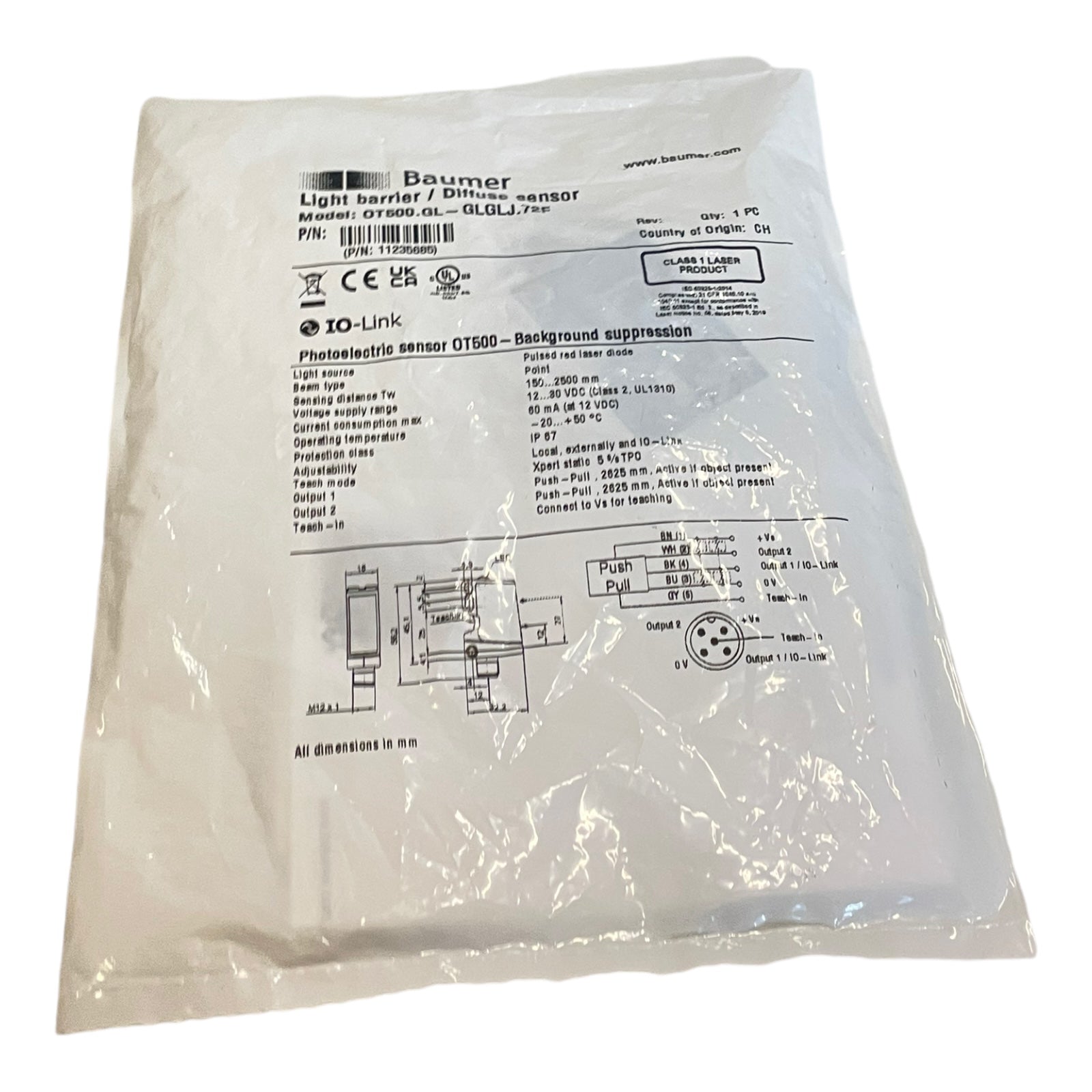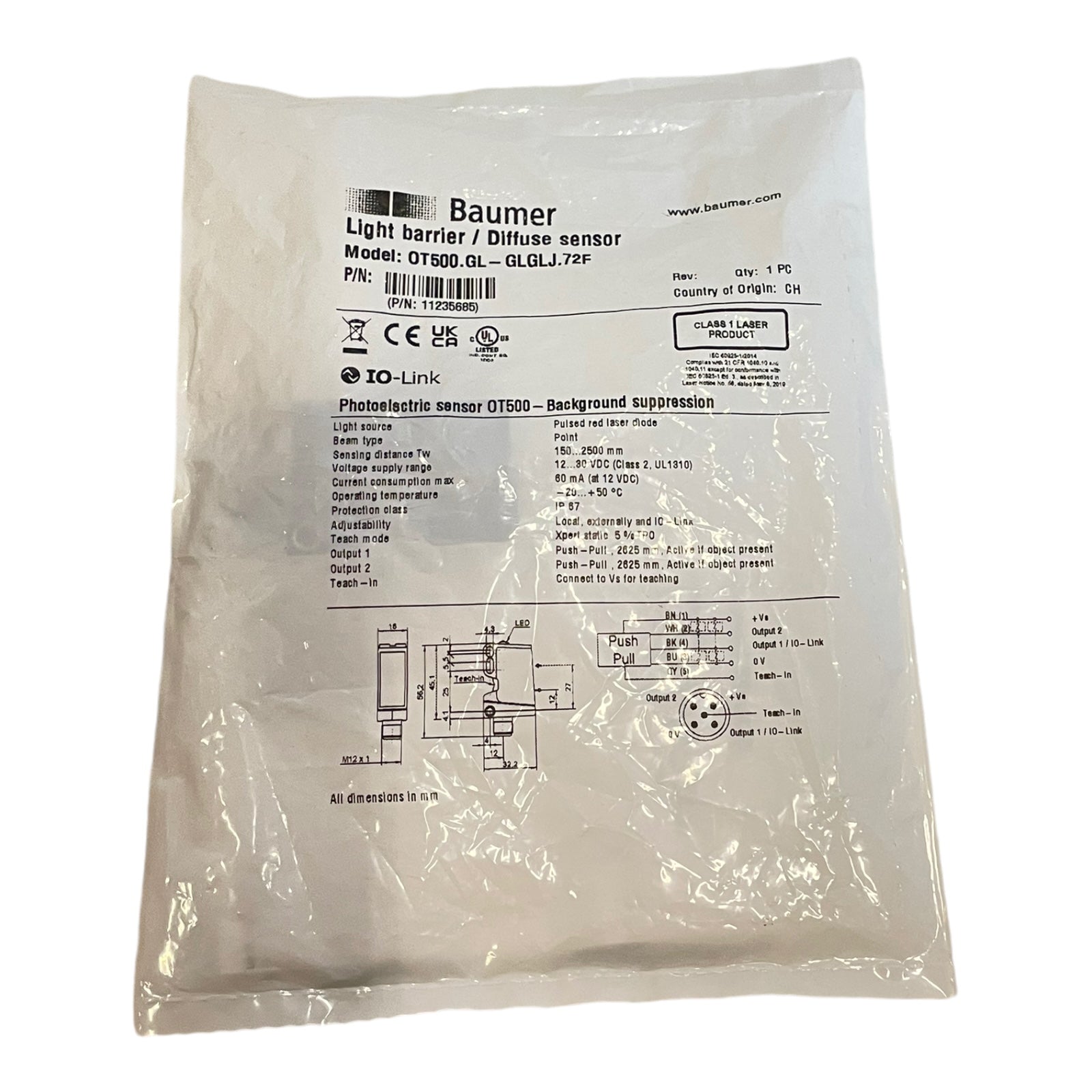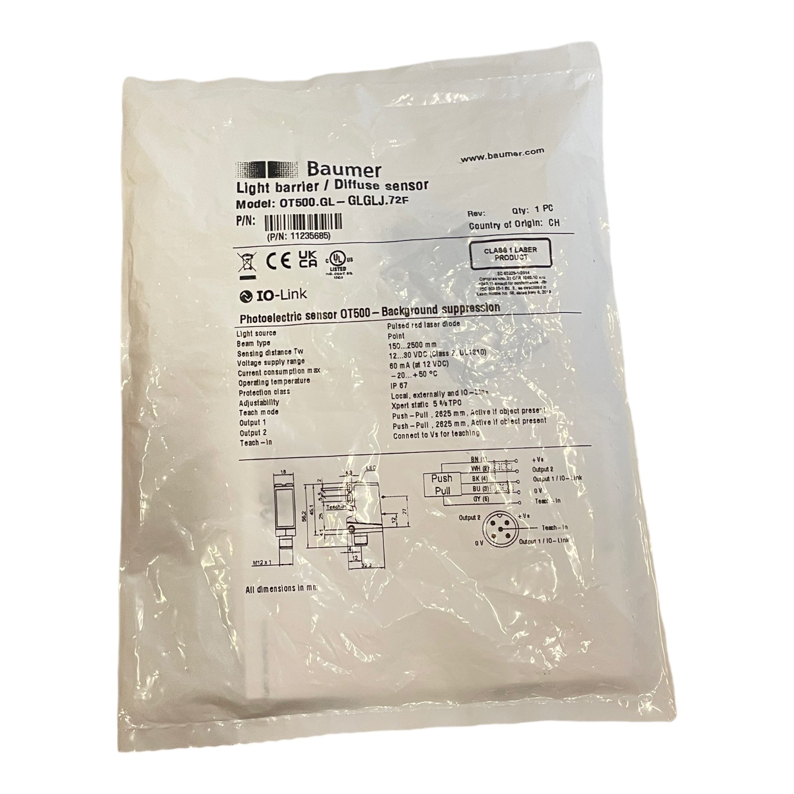 Baumer OT500.GL-GLGLJ.72F Reflexions-Lichttaster mit Hintergrundausblendung 1123