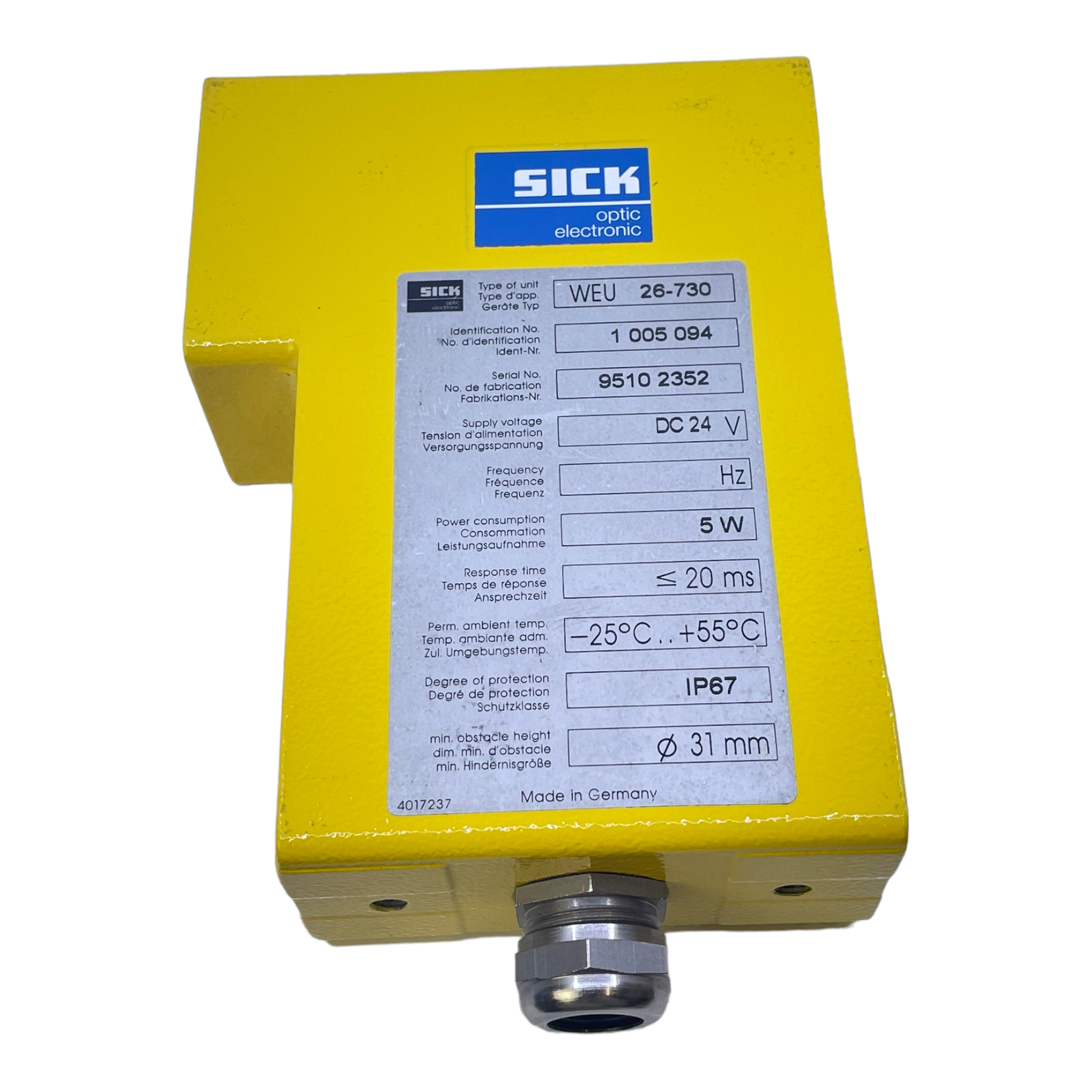 Sick WEU 26-730 Lichtschranke 1005094 DC 24V 5W ≤ 20ms -25°C ..+55°C IP67 ø31mm