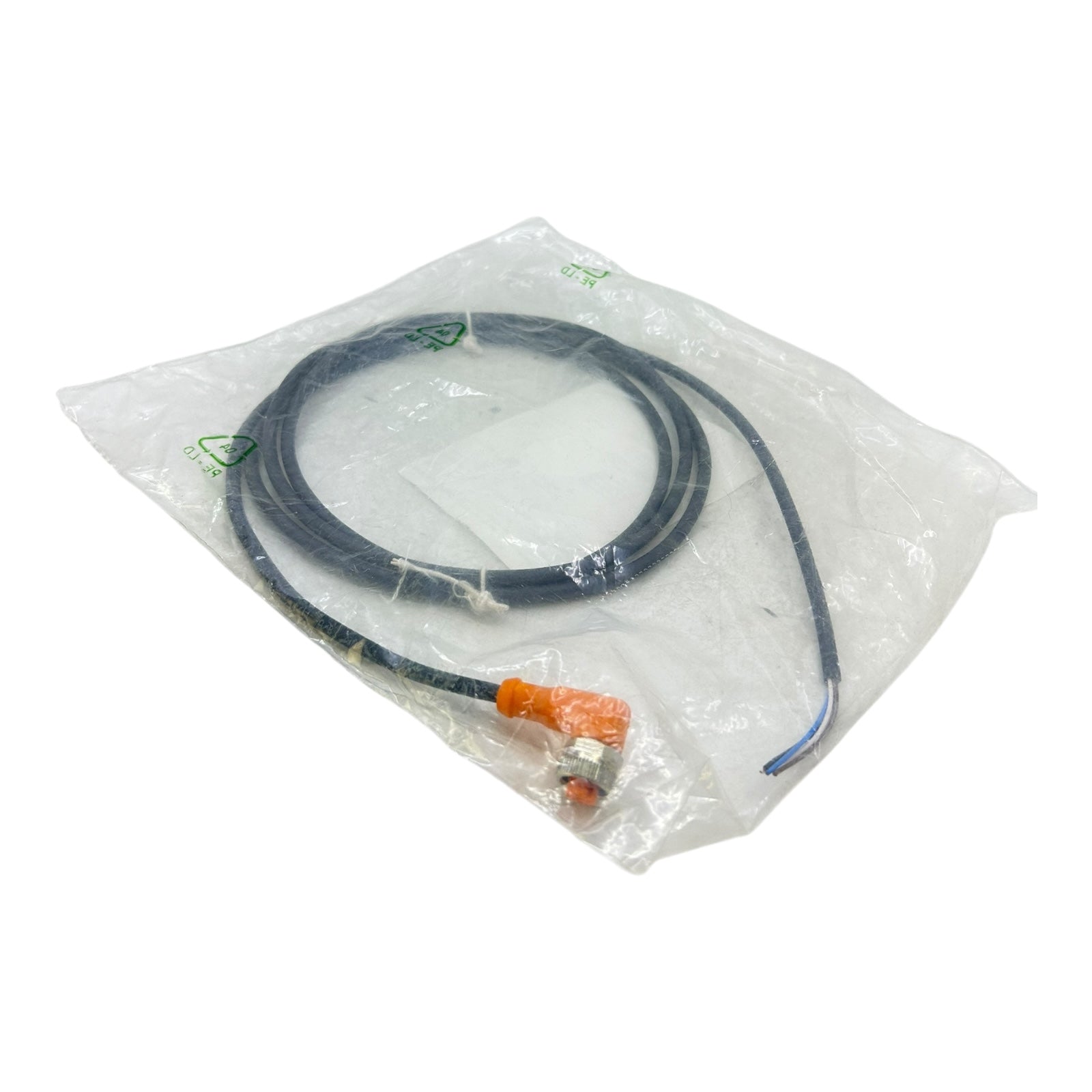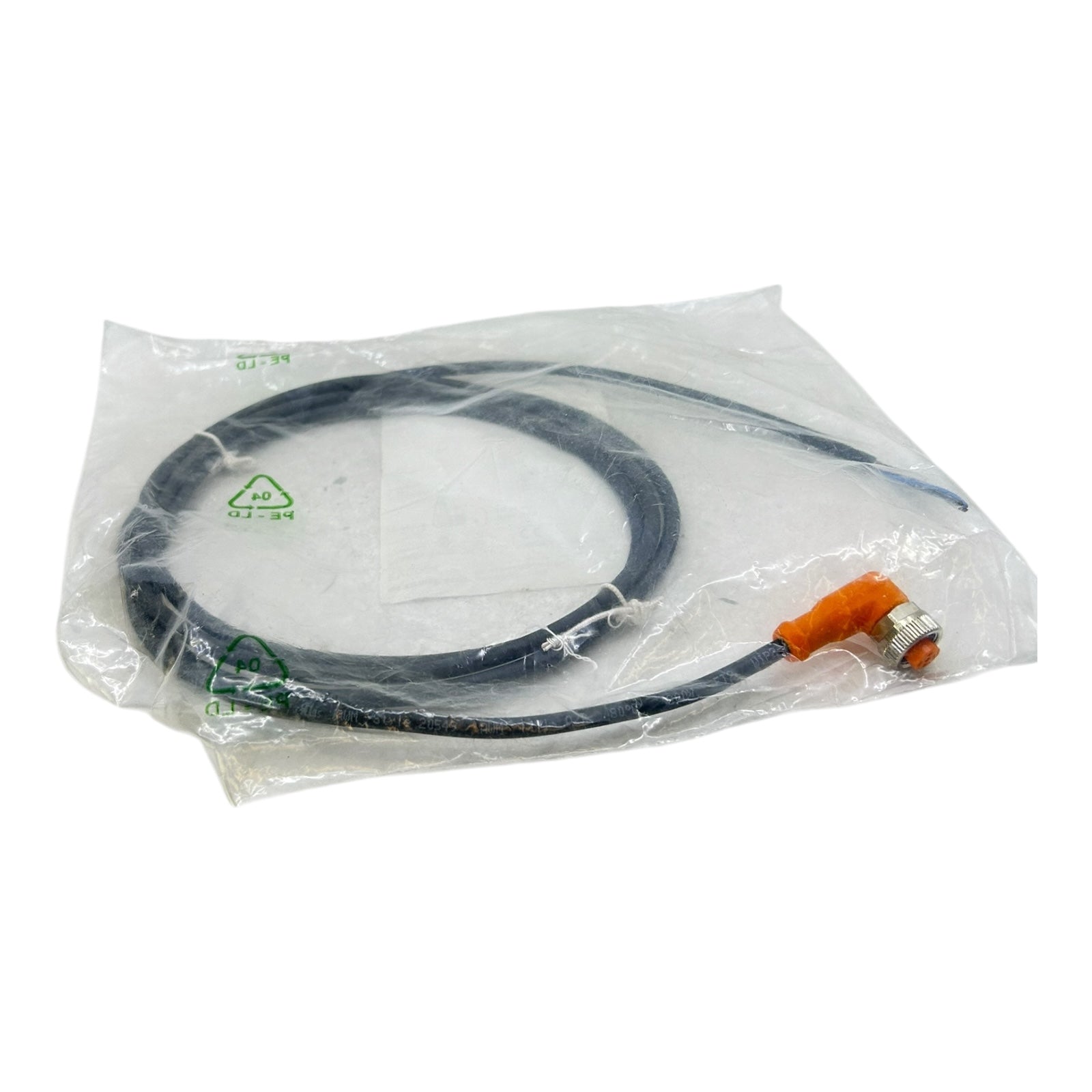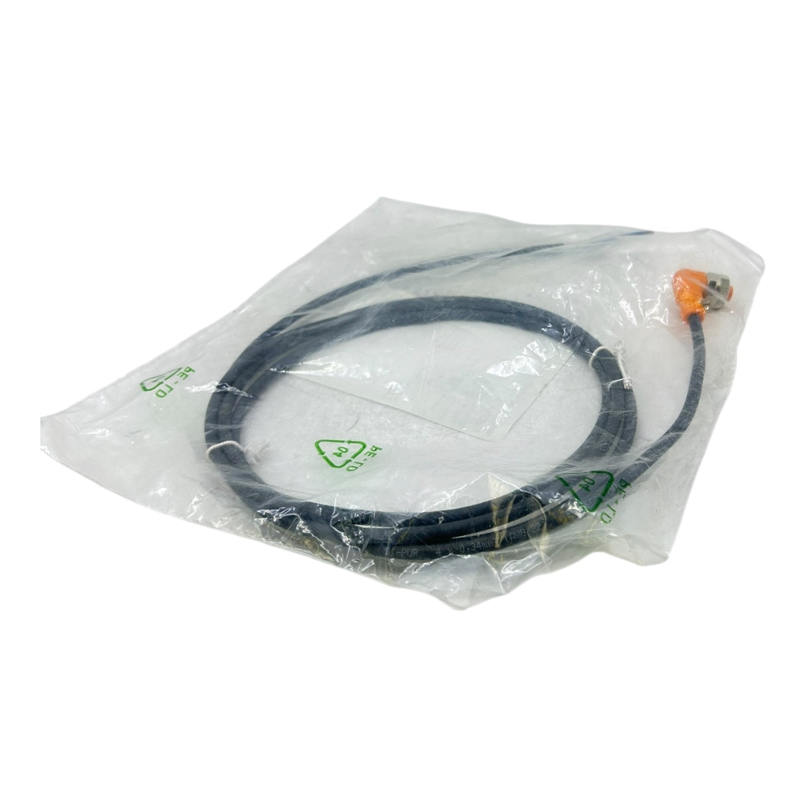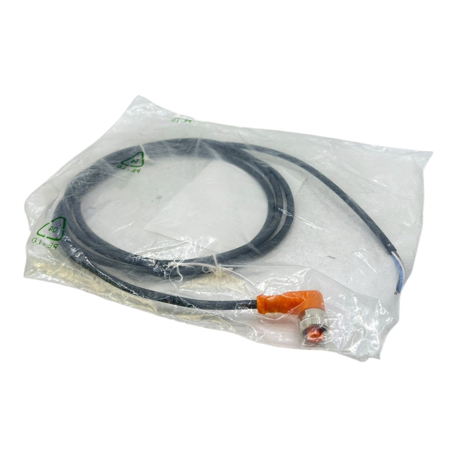 Elektrischer Anschluss – Buchse: 1 x M12, abgewinkelt, A-codiert; Griffkörper TPU, orange; Überwurfmutter Messing vernickelt; Dichtung FKM; Kontakte vergoldet