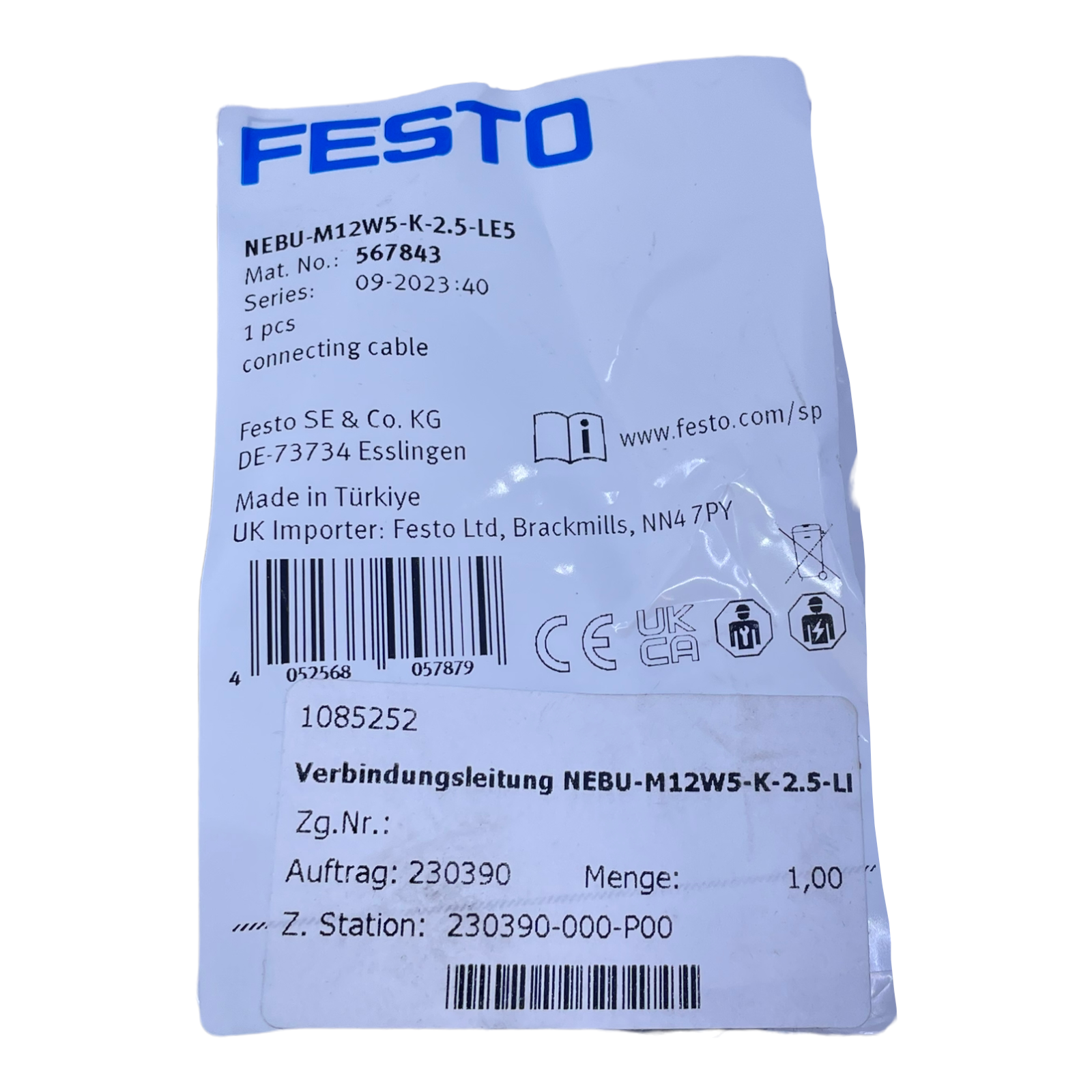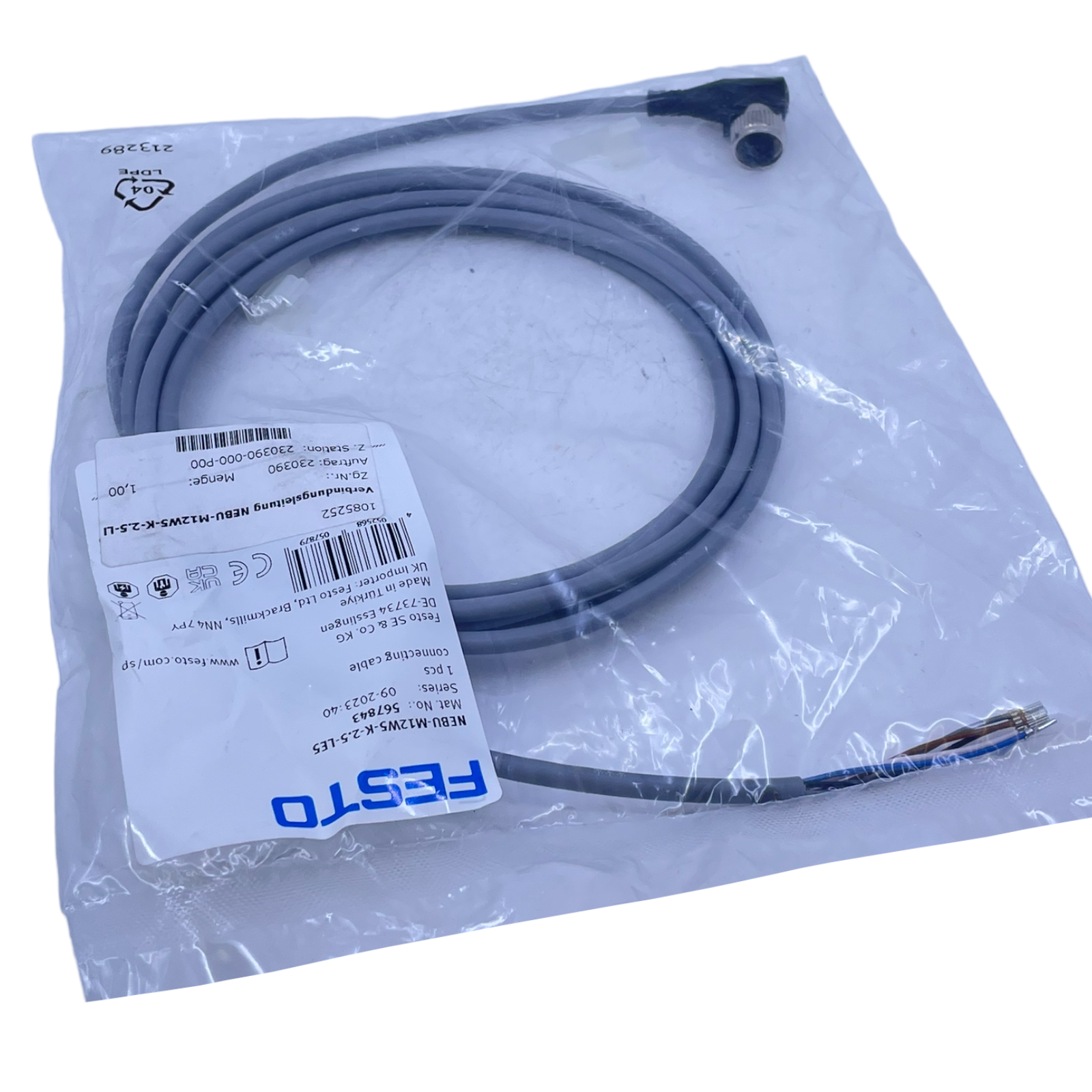 Festo NEBU-M12W5-K-2.5-LE5 connecting cable 567843 0 to 60VAC/DC 4.0A 1.5kV