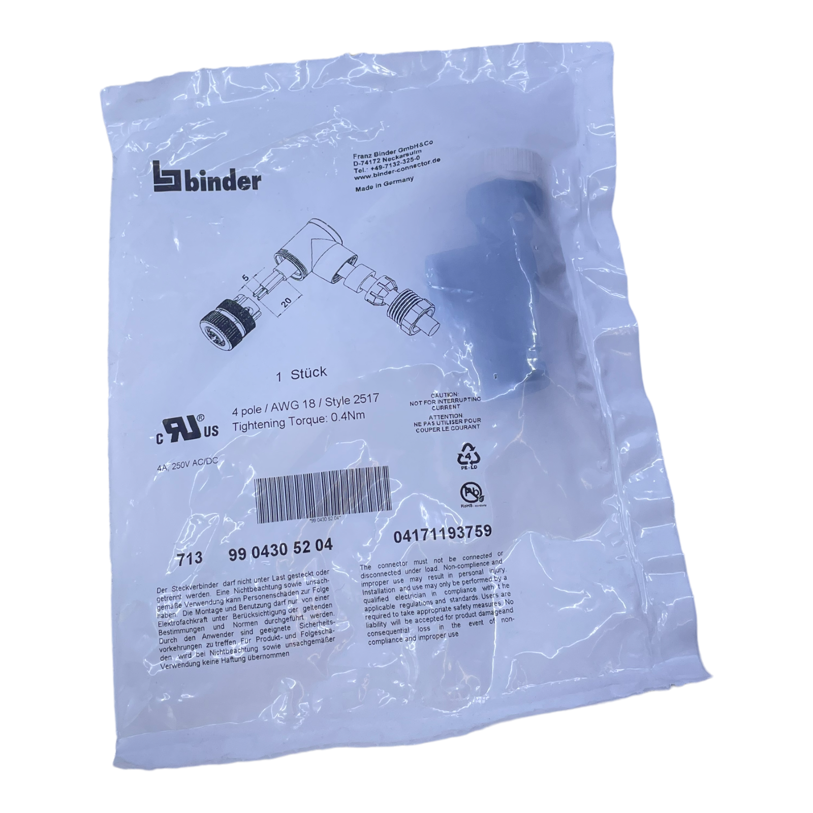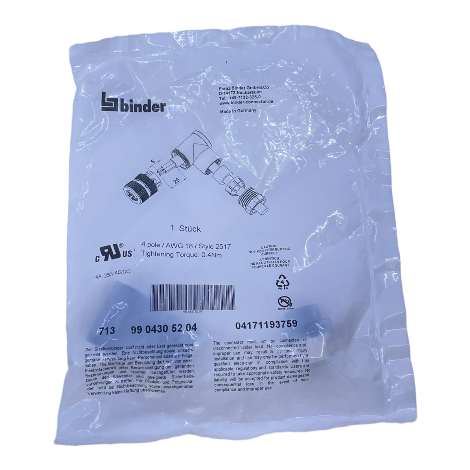 Binder 9904305204 Angle box for industrial use 9904305204 Angle box