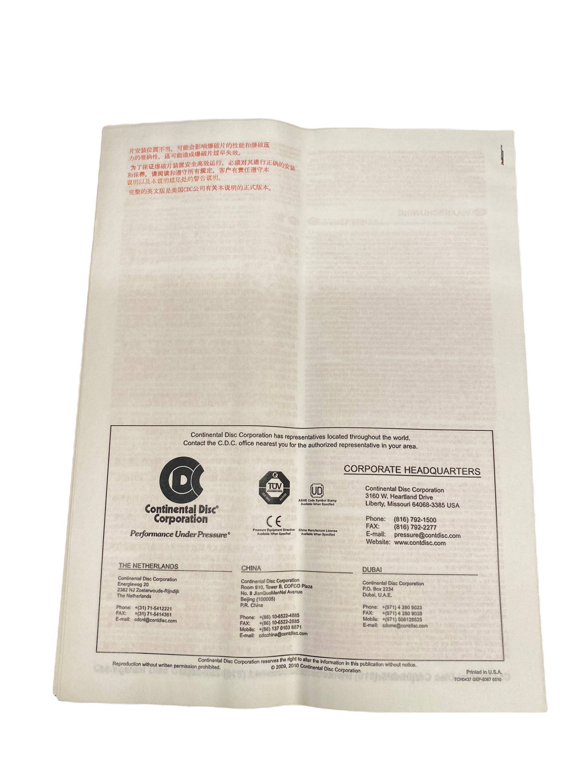 Burst pressure: 0.3 bar at 22 degrees Celsius