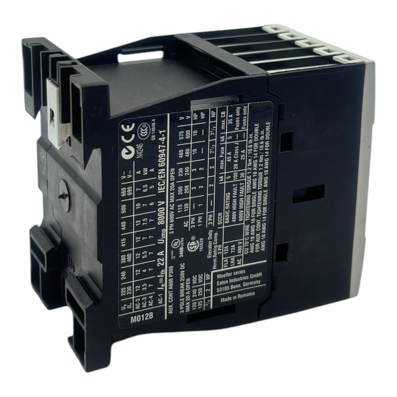 Eaton XTCE012B01 power contactor for industrial use 230V 50Hz 240V 60Hz