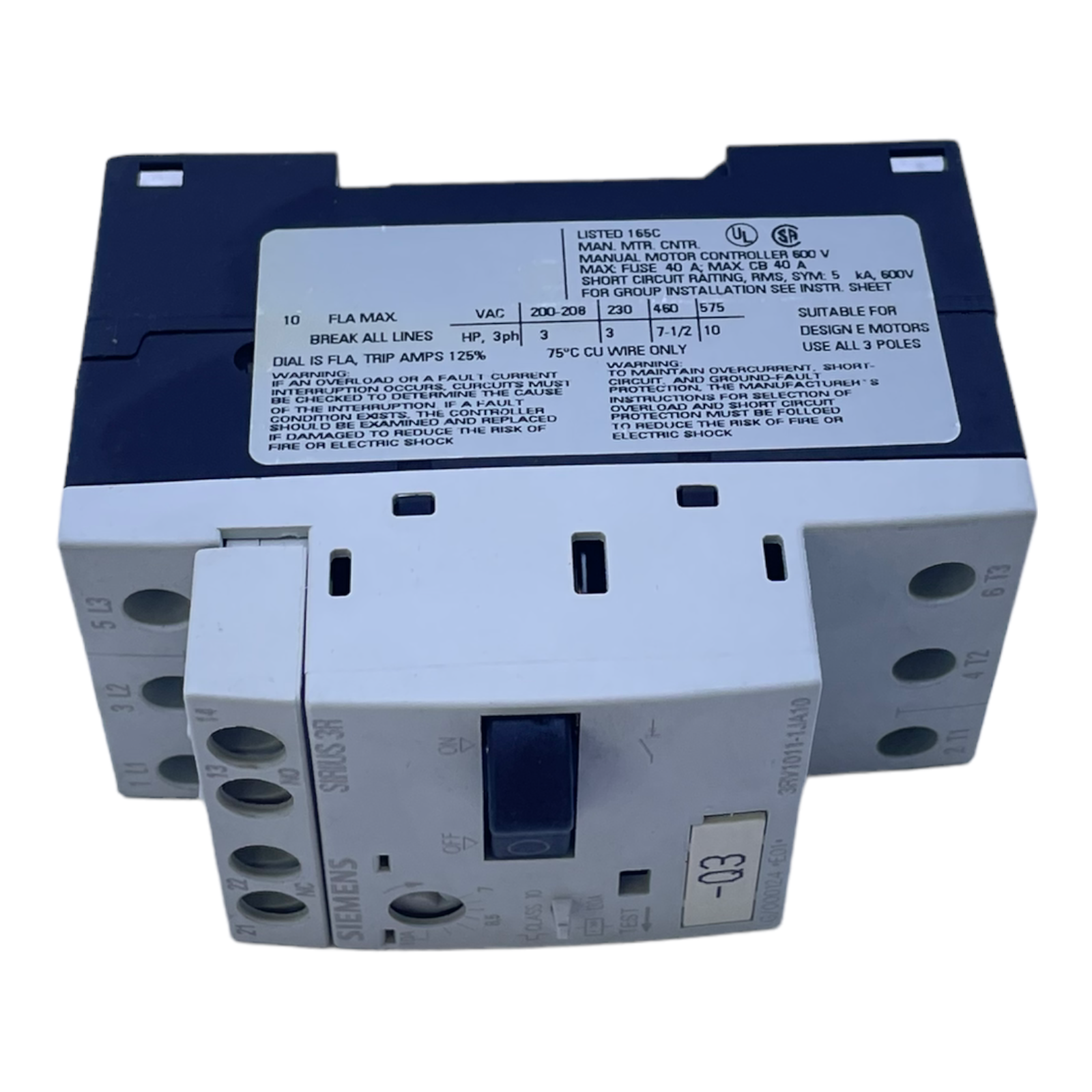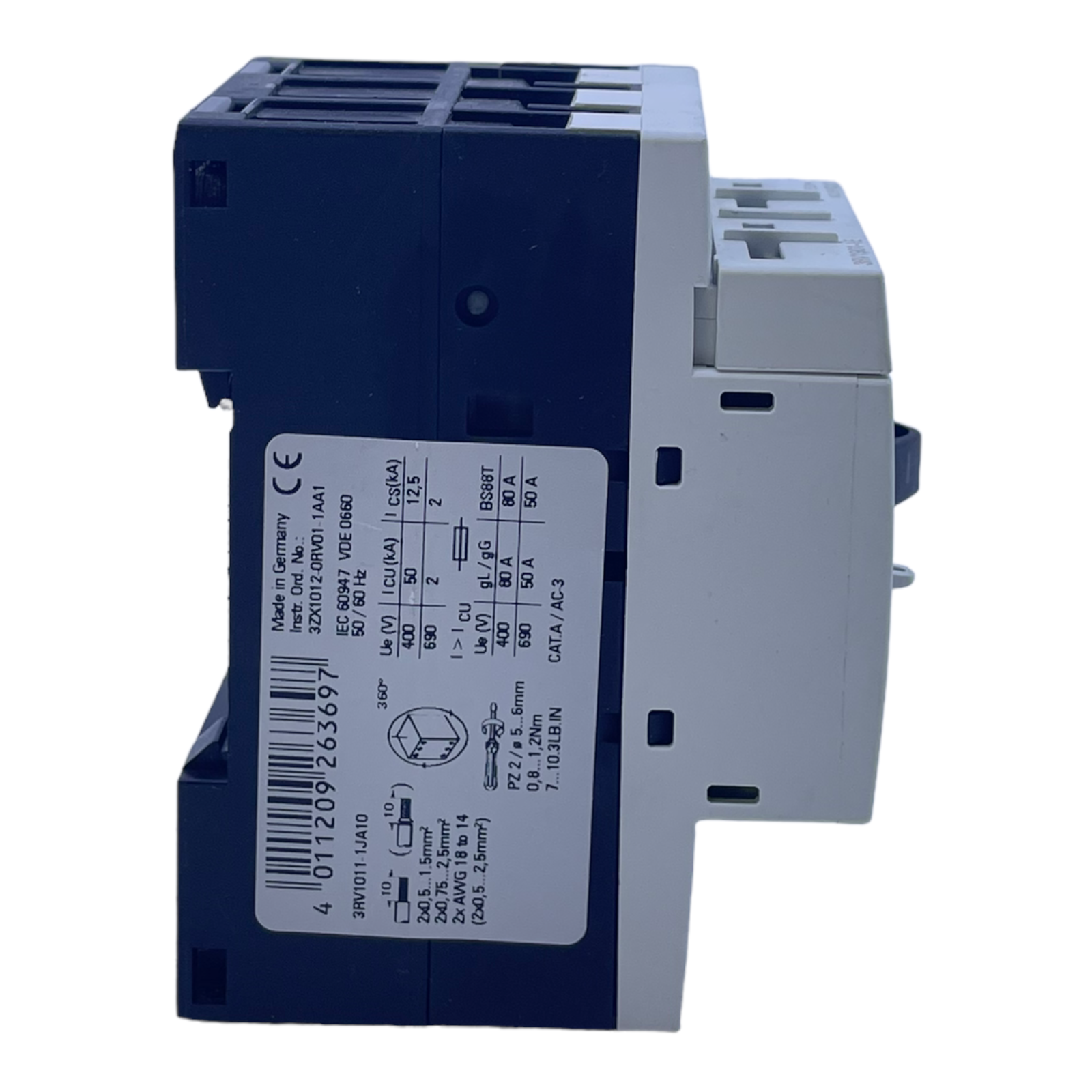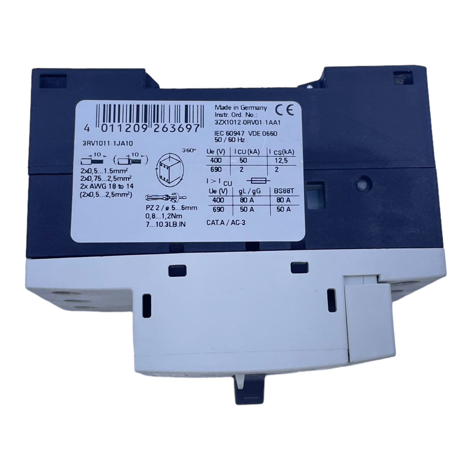 Siemens 3RV1011-1JA10 circuit breaker for industrial use 50/60Hz