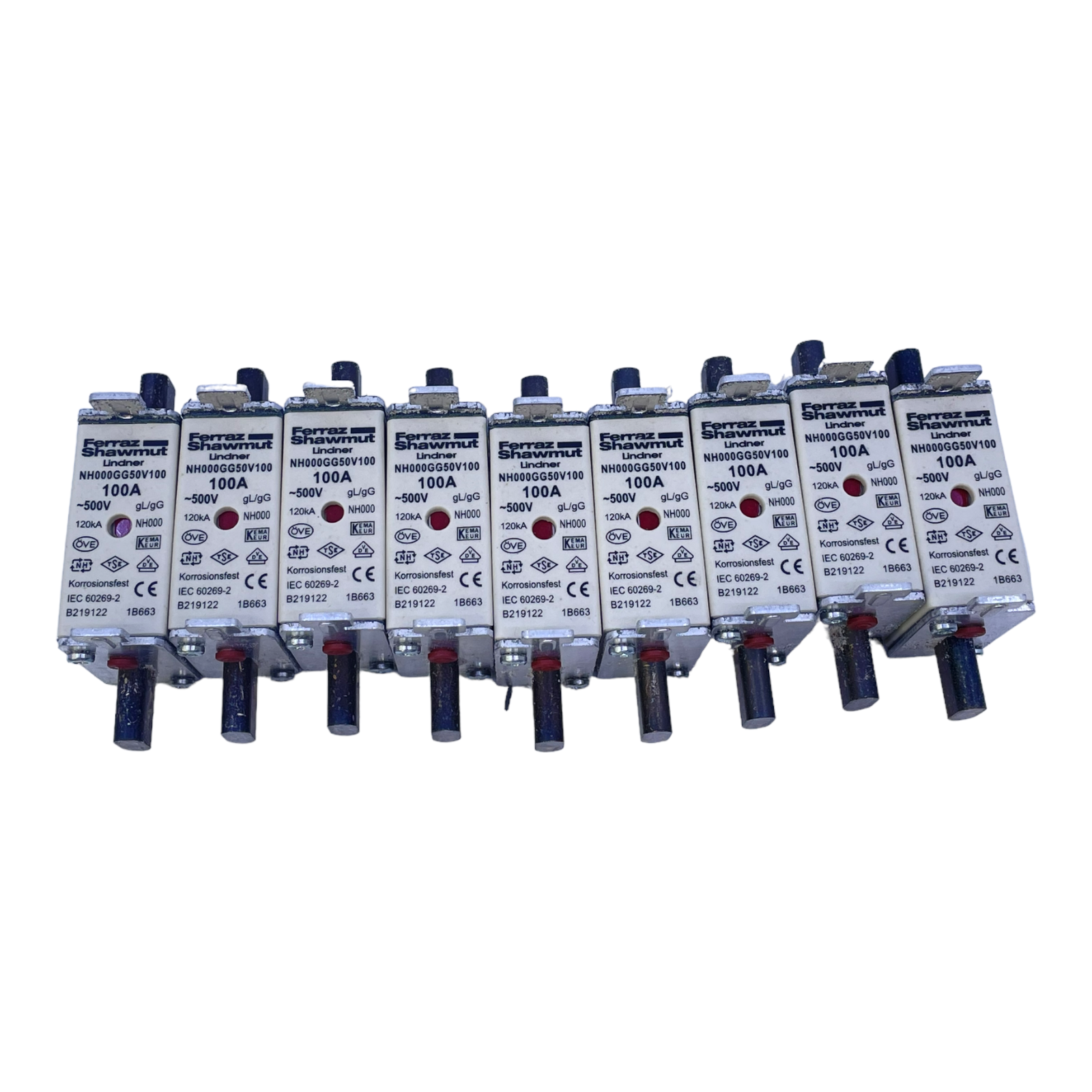 Ferraz Schawmut NH000GG50V100 NH fuse set 100A 120kA 500V VE:9pcs