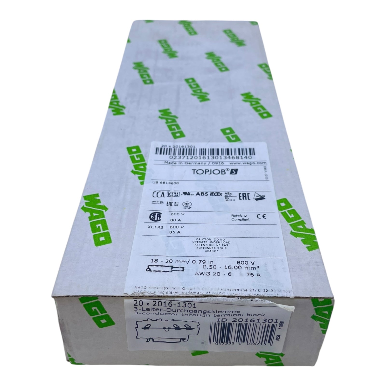WAGO Durchgangsklemme 16mm² 2016-1301 VE:20 Stück