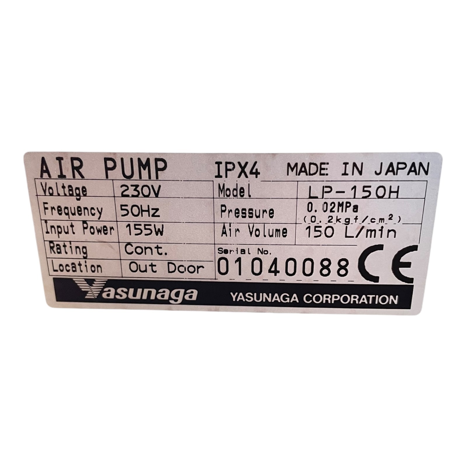 YASUNAGA LP-150H aerator pump diaphragm compressor 230V for industrial use