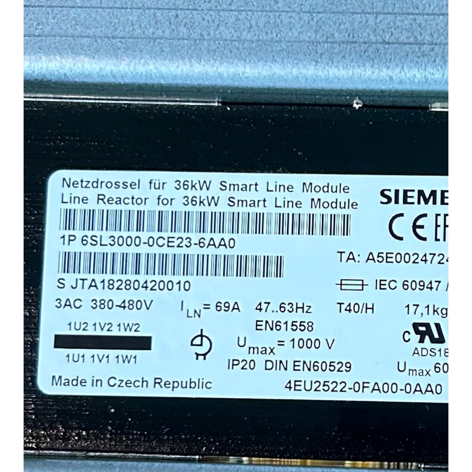 Siemens 6SL3000-0CE23-6AA0 line reactor for 36kW Smart Line Module transformer