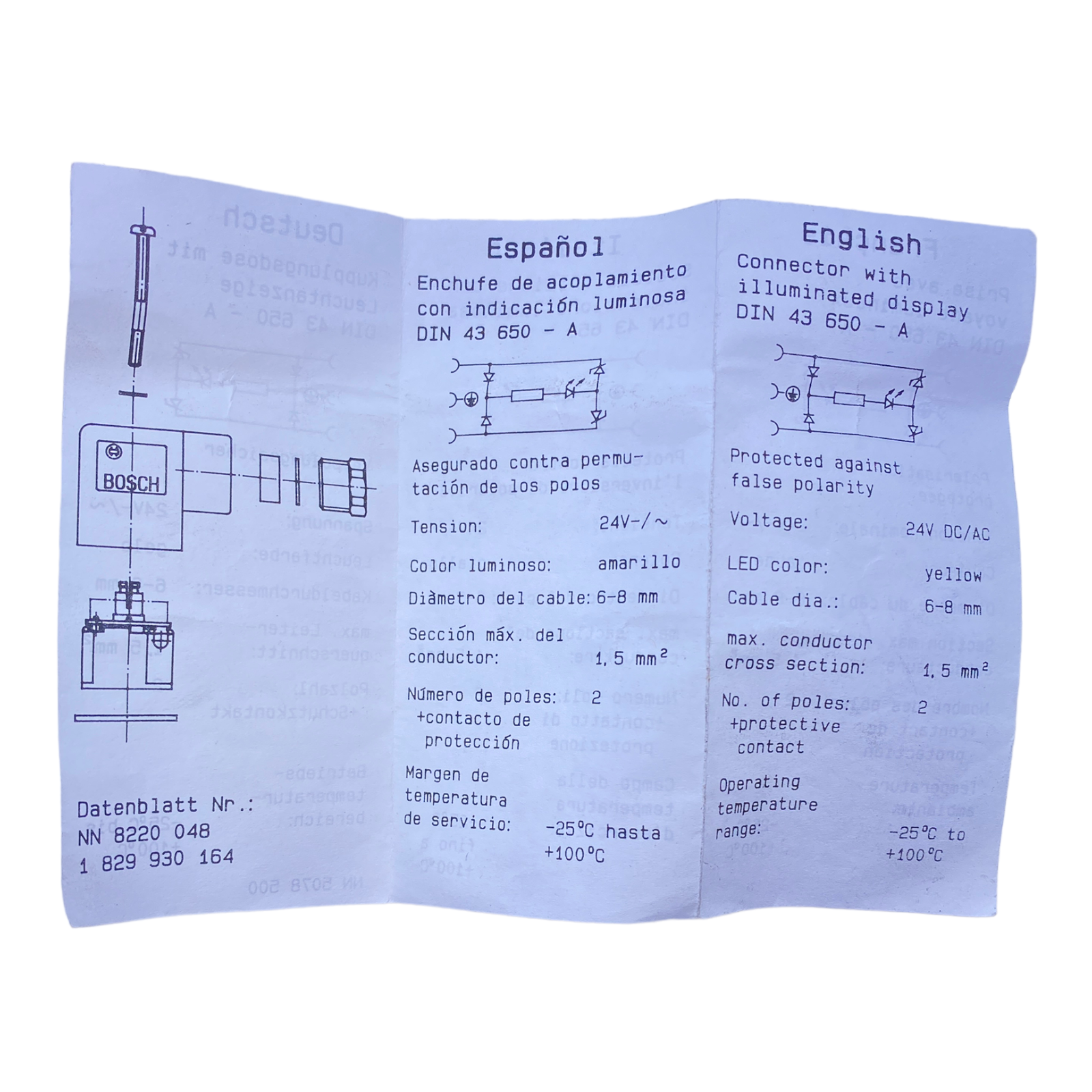 Bosch 1834484101 Stecker 22...26V AC/DC
