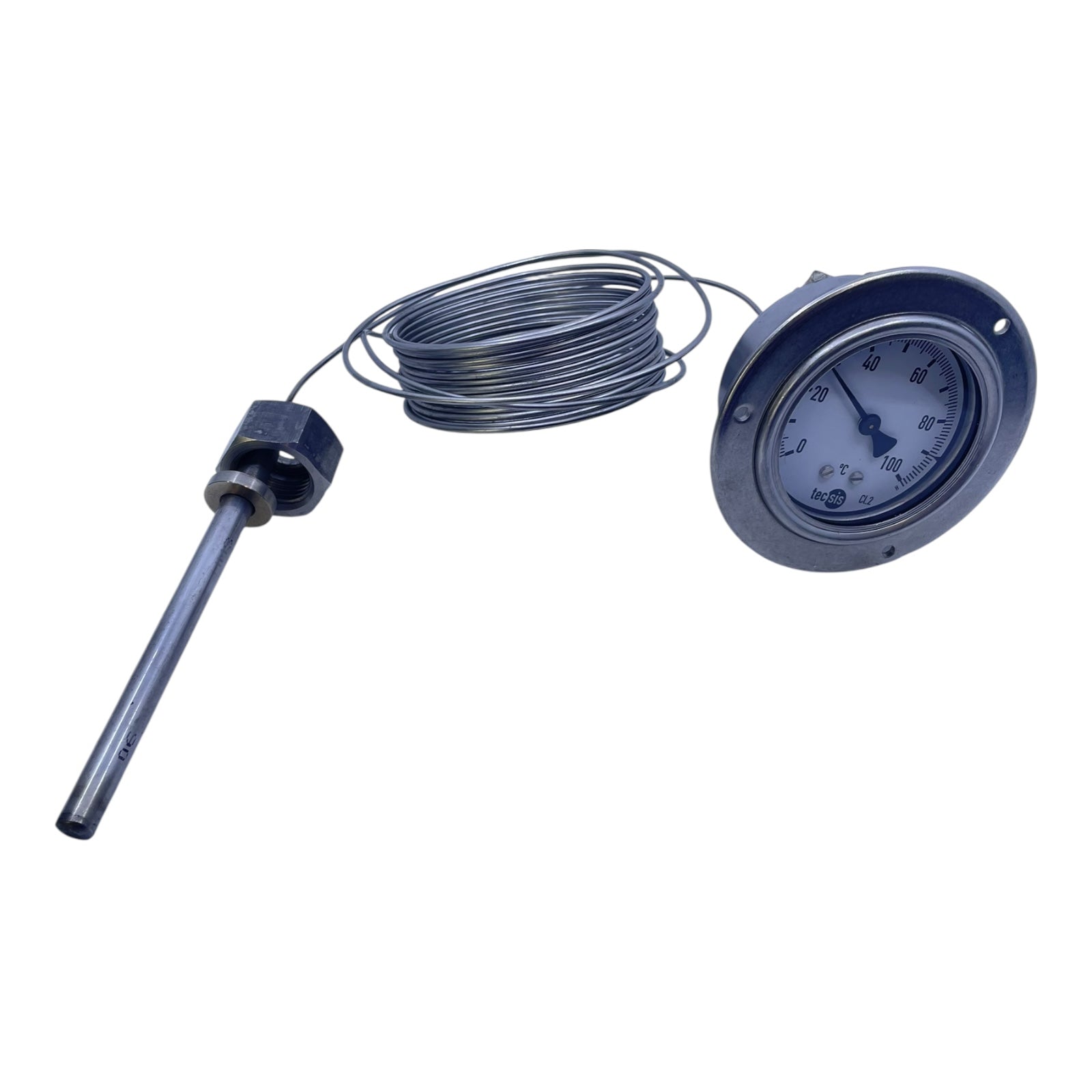 Tecsis Bimetall Thermometer 0–100°C mit Kapillarrohr und Tauchhülse